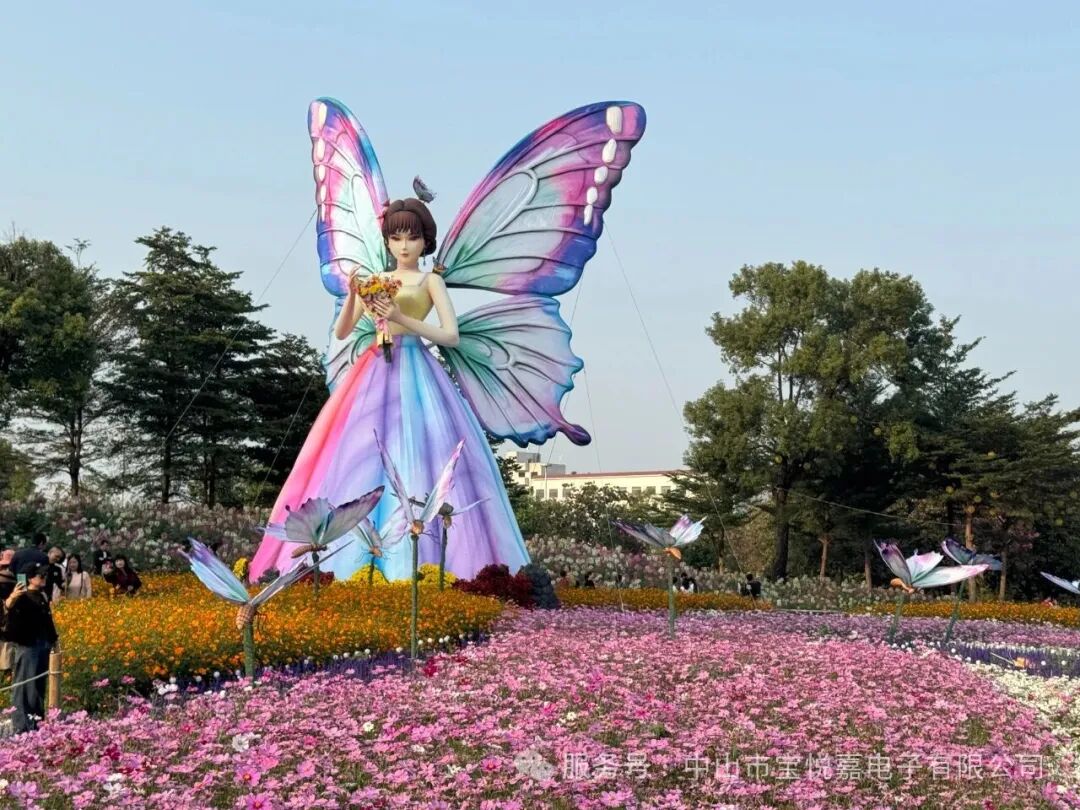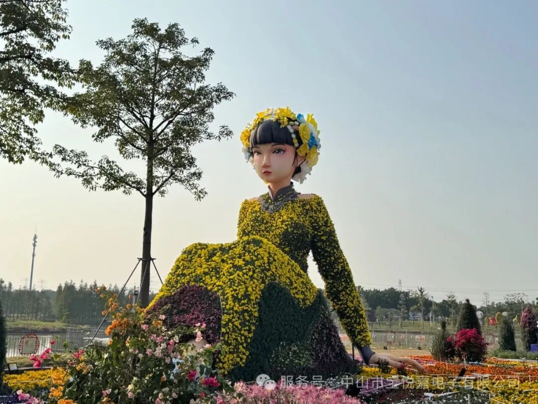 The warm yellow lantern string of the "Ancient Style and Elegant Charm" market is wrapped in the fragrance of chrysanthemums in the twilight, and the liveliness of the chrysanthemum festival continues from day to dusk: a girl wearing Hanfu leans against a giant butterfly fairy floral sculpture and smiles lightly, a pink long haired rabbit coffee cart wafts with latte fragrance, and in front of the flower scene check-in point of Baoyuejia, tourists sit on pink benches, taking photos in front of the slogan "I am waiting for the wind, and I am waiting for you" - the daisies next to the yellow mobile phone device have woven into a gentle background with the continuous flower sea of the chrysanthemum festival.